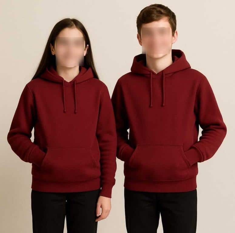 Hırka: Bordo renkte düğmeli ya da fermuarlı, kapüşonlu ya da kapüşonsuz hırka veya sweatshirt tercih edilmelidir.